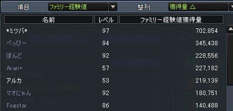 そして抜ける直前のミツバのファミ経験値獲得量がこんな感じ^q^↓