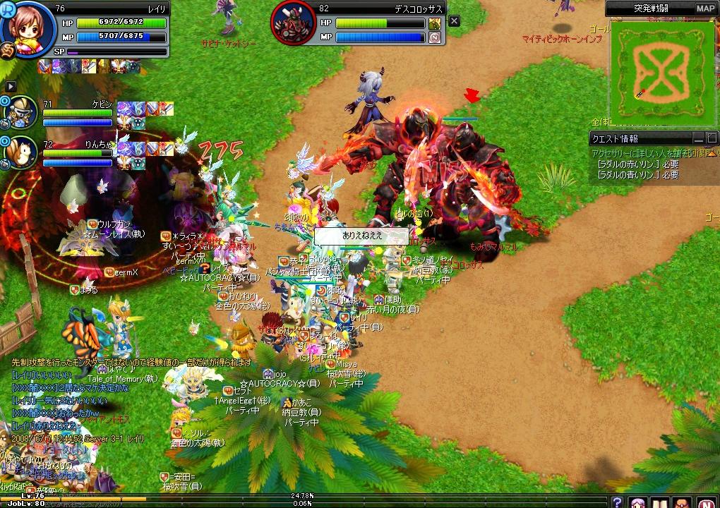 あの鬼畜突発ですね・・・・オソラクこれは失敗に終わったのでしょう・・・まぁ今この突発に戻っても楽勝なんだろうけどねぇ(´_`)この頃は人数そろう時間帯じゃないとクリアできなかったっていうね^q^