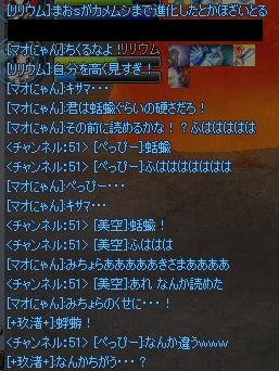 さて、まおにゃんさんとリリウム氏と狩りをしていたときのことなんですが、リリウム氏が大量にMOBをまおにゃんさんに釣って来たんですが、まぁ死ななかったわけですよ↓