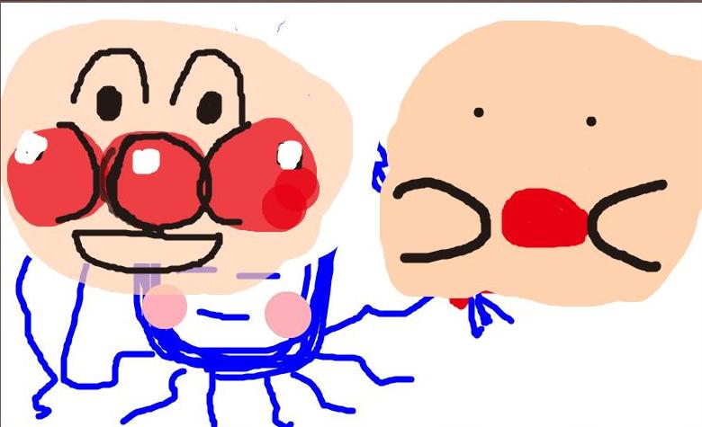 で、そのあと何故か二人でアンパンマンを描きました(^ω^)