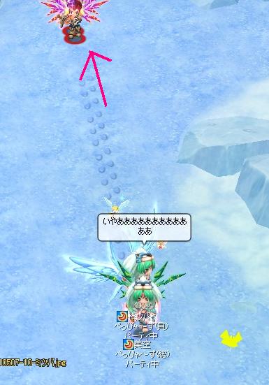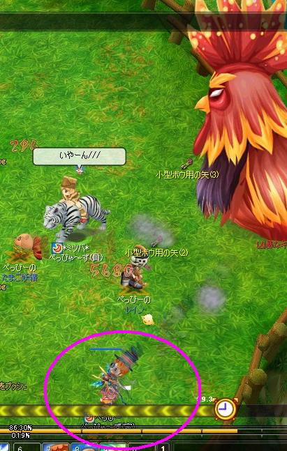 とか言ってたらぺぴゃが矢投げにきてくれたんですが、投げにきたらちょうどココにふまれてふっとばされてるところを激写してしまったの図↓