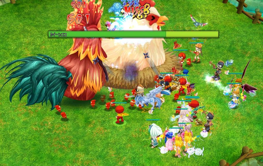 標的は卵を必死で守ろうとする嫁鶏・・・そしてその嫁鶏を守るために必死でプレイヤーを攻撃してくる夫鶏・・・・だが必死で守る雄鶏の攻撃もむなしく嫁鶏はプレイヤーに倒されてしまうのであった・・・