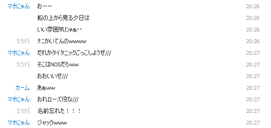 で、タイタニックごっこしようぜっていうまおにゃんさんの一言からこんな感じに(・∀・)