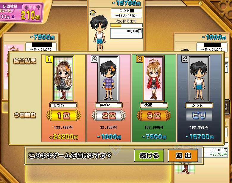 1人勝ちでごっめーん☆(ゝω・)vキャピ