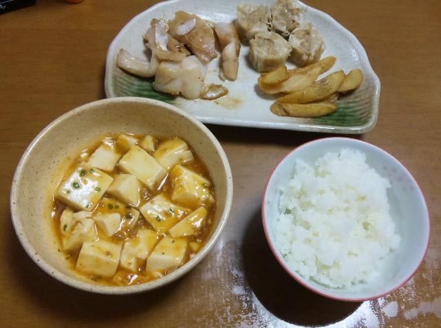 んで右側は見てのとおりしゅーまいとポテトなわけだが、しゅーまいはレンジでチーン(・∀・)!ポテトも父が持って帰ってきたのをレンジでチーン(・∀・)!