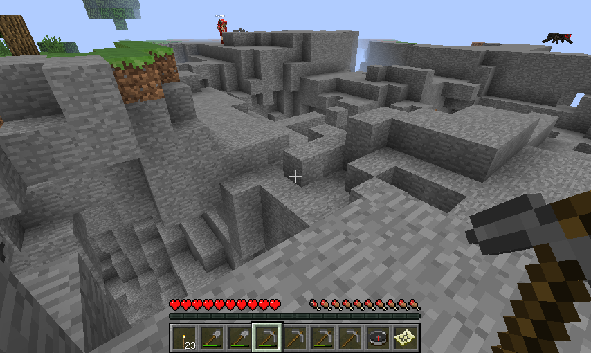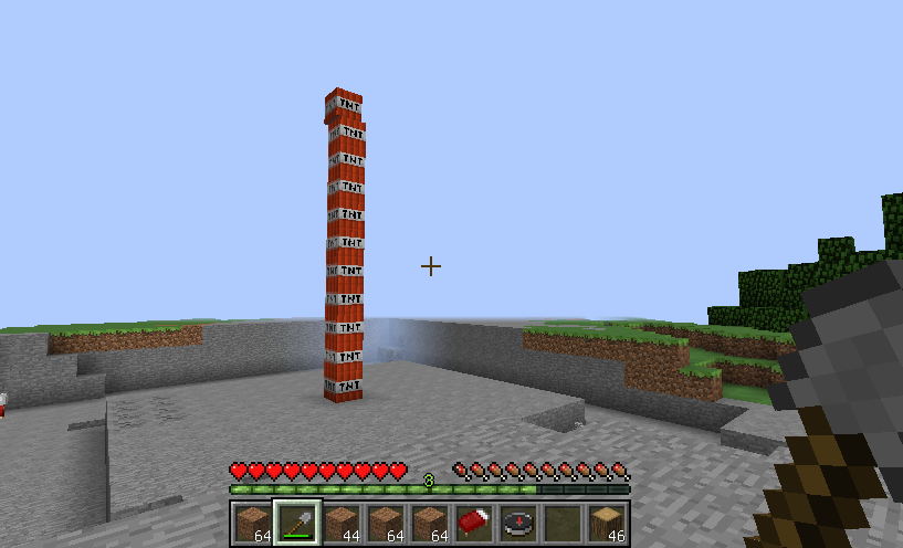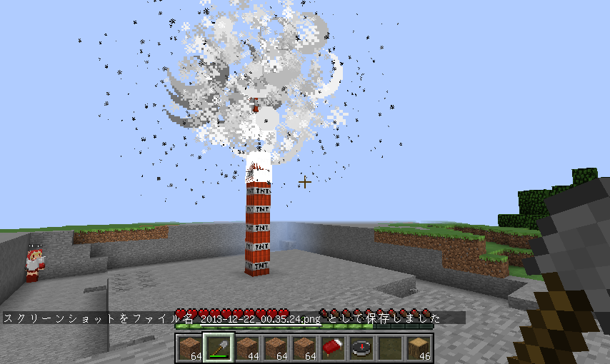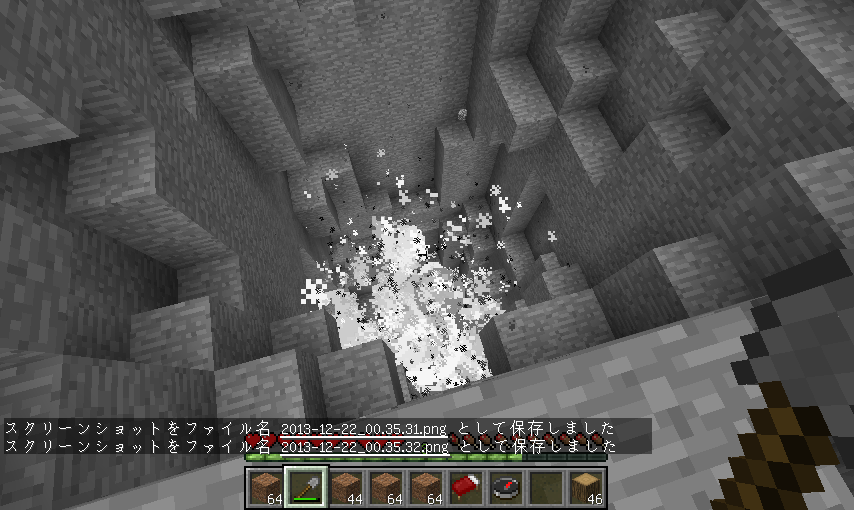 ちまちまみんなで削ってたけどそこでカームさんが一言「TNT(爆弾のこと)使いたいねぇ」ってことでまおにゃんさんがチートを使ってこうなった^q^↓